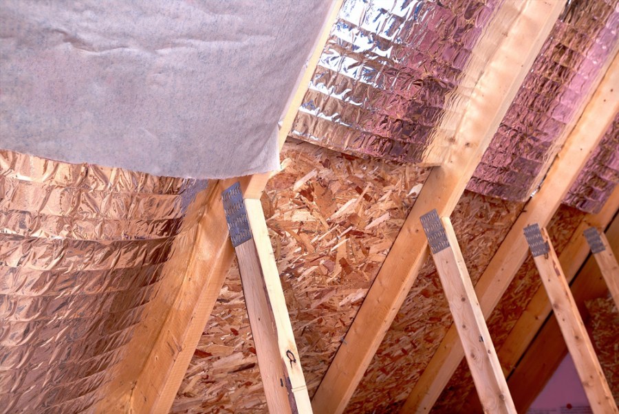 Если применяются покрытия с фольгированным слоем, то они будут отражать большую часть тепла, отправляя обратно в помещение. А вот влажный воздух сможет свободно выходить наружу. В качестве основной задачи такого покрытия выступает защита теплоизоляции от скапливания в ней влаги.
