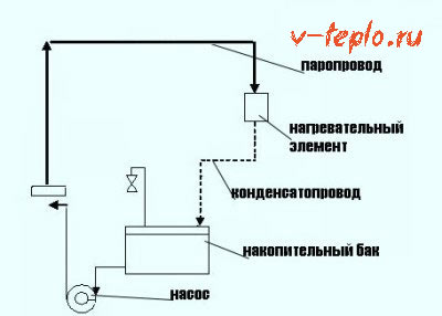 Независимо от вида топлива, принцип, используемый в этом случае, один и тот же – нагрев воды и ее испарение с последующей подачей пара в систему отопления. А что будет выступать в роли источника пара – специальный котел или печка, по сути, определяется вашими возможностями и желаниями. Отопление с помощью пара – достаточно специфический вид обогрева, основанный на процессах его конденсации и выделении при этом тепла. Его используют чаще всего на промышленных предприятиях, где есть возможность получения пара, и нет нормативных ограничений на применение такого вида обогрева помещений.