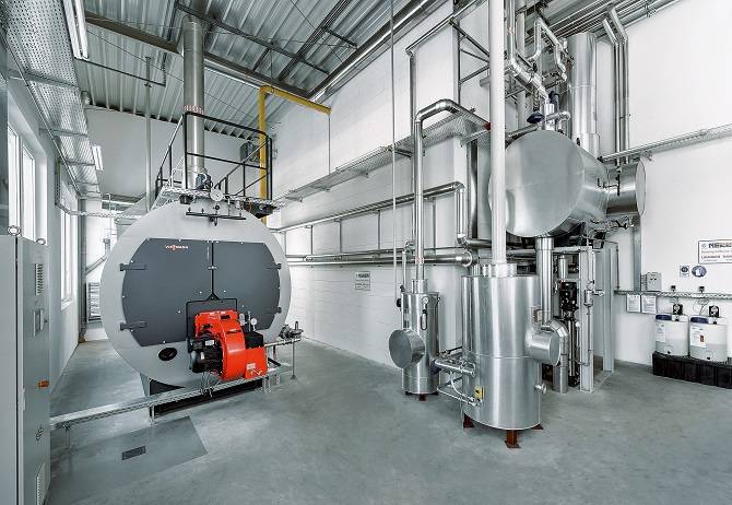 Промышленные паровые котлы, работающие на твердом топливе, отличаются большой мощностью и крупными габаритами. Они используются для отраслей пищевой, текстильной и перерабатывающей промышленности.
