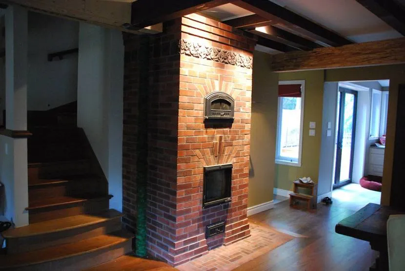 При приточной вентиляции кирпичная отопительная печь будет иметь эффективную систему вытяжной вентиляции, а также тепловой аккумулятор, который мог бы сглаживать разовые скачки и суточные перепады температуры.