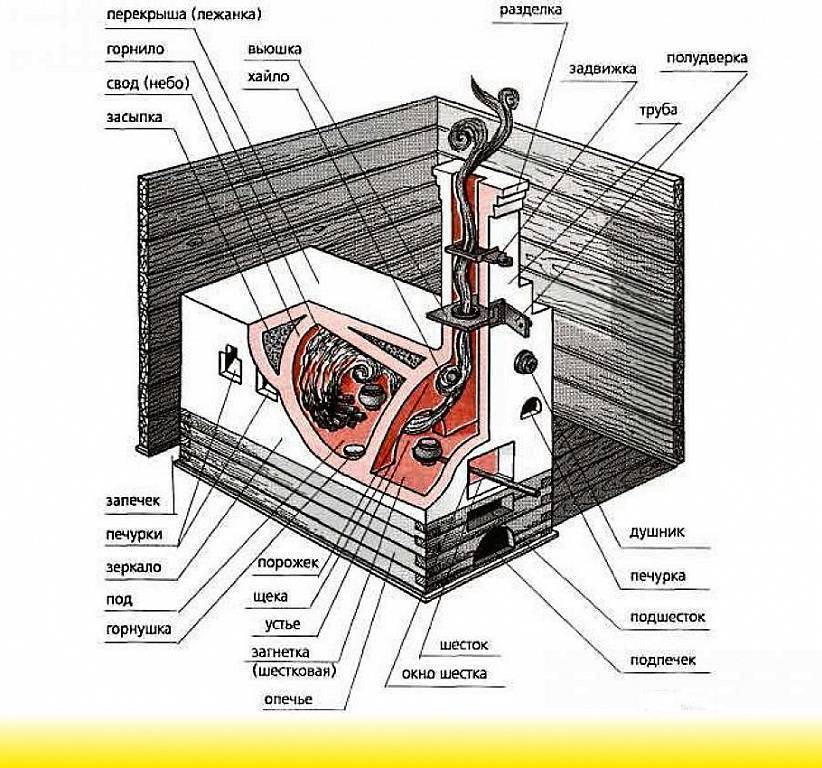 Основной задачей такой конструкции является максимальный нагрев стенки печи, а после уже тепло будет долго распространяться по всему помещению.