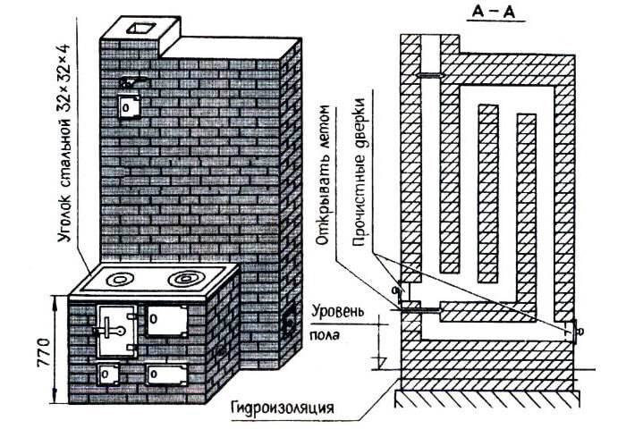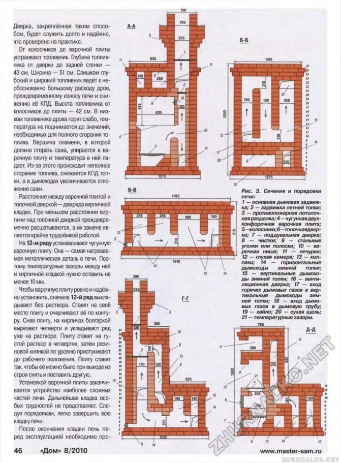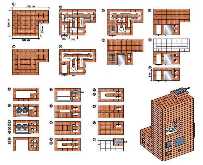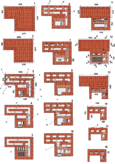 Порядок кладки отопительно-варочной печи с лежанкой