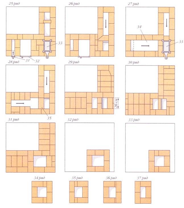 с 23-го по 33-й — подъём дымохода с установкой задвижек и прочистных люков.