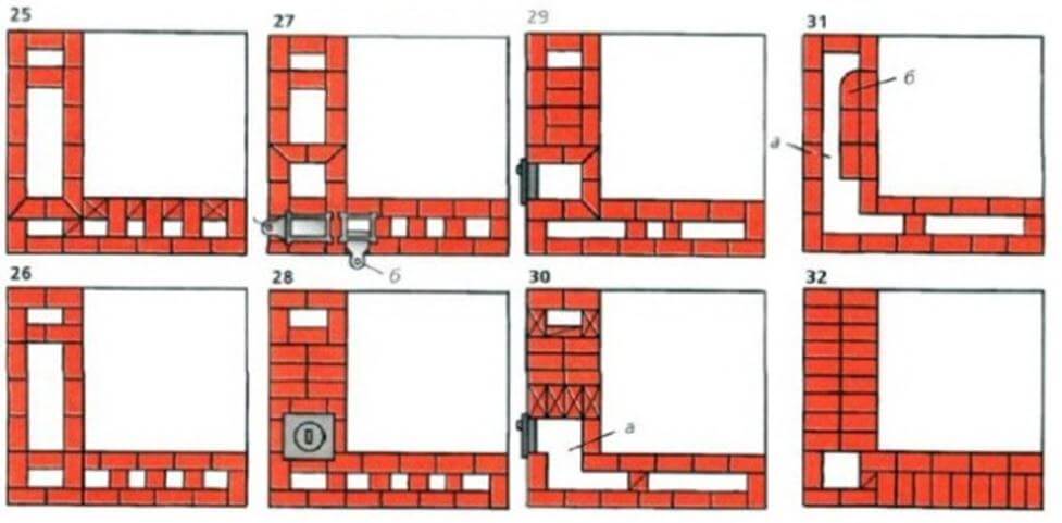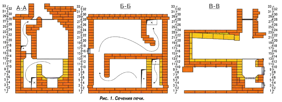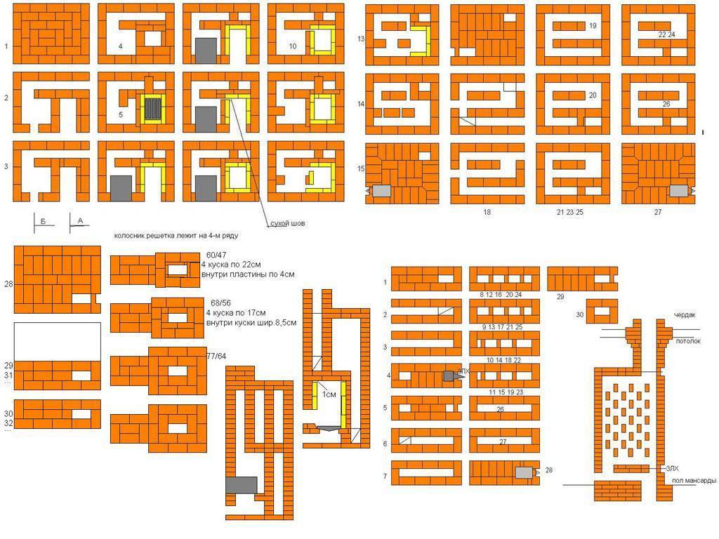 Схема кладки печи с лежанкой