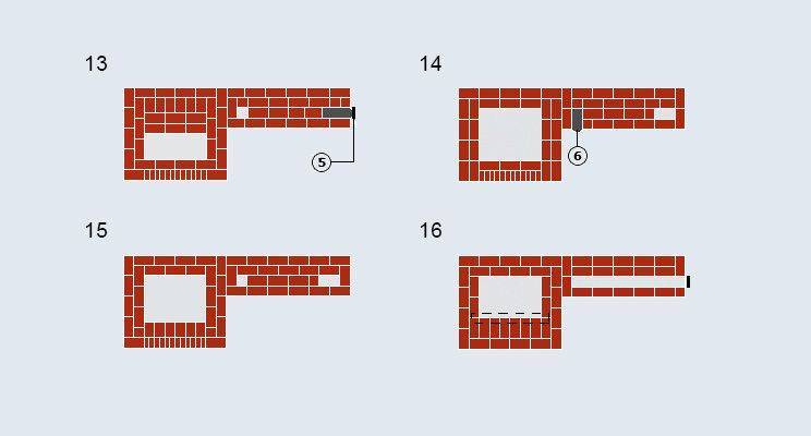 в 3-ем ряду устанавливают поддувальную дверку и продолжают выкладывать дно варочного отдела с перевязкой элементов предыдущего ряда;