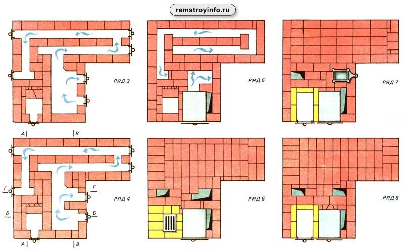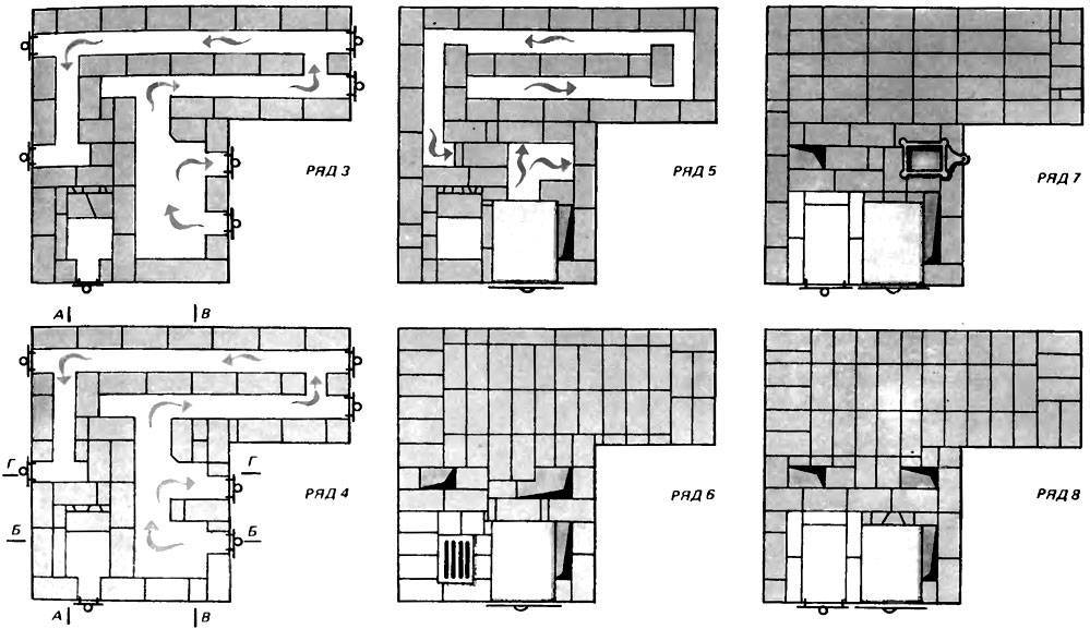 с 9-го по 11-й ряд — формирования топки, установка плиты;