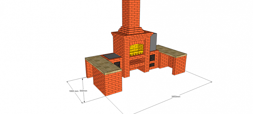 Если устанавливать кирпичный барбекю собираетесь в беседке, предложенные выше варианты не подойдут — дым будет весь под крышей, что радости вам не добавит. Для беседок нужен мангал с вытяжной трубой. Это сооружение более сложное, но и такой вариант вполне можете сделать самостоятельно. Приведенную ниже порядовку мангала из кирпича для беседки своими руками сложить тоже не очень сложно. Она также, как и первая, имеет ровный свод, что намного проще делать при отсутствии опыта.