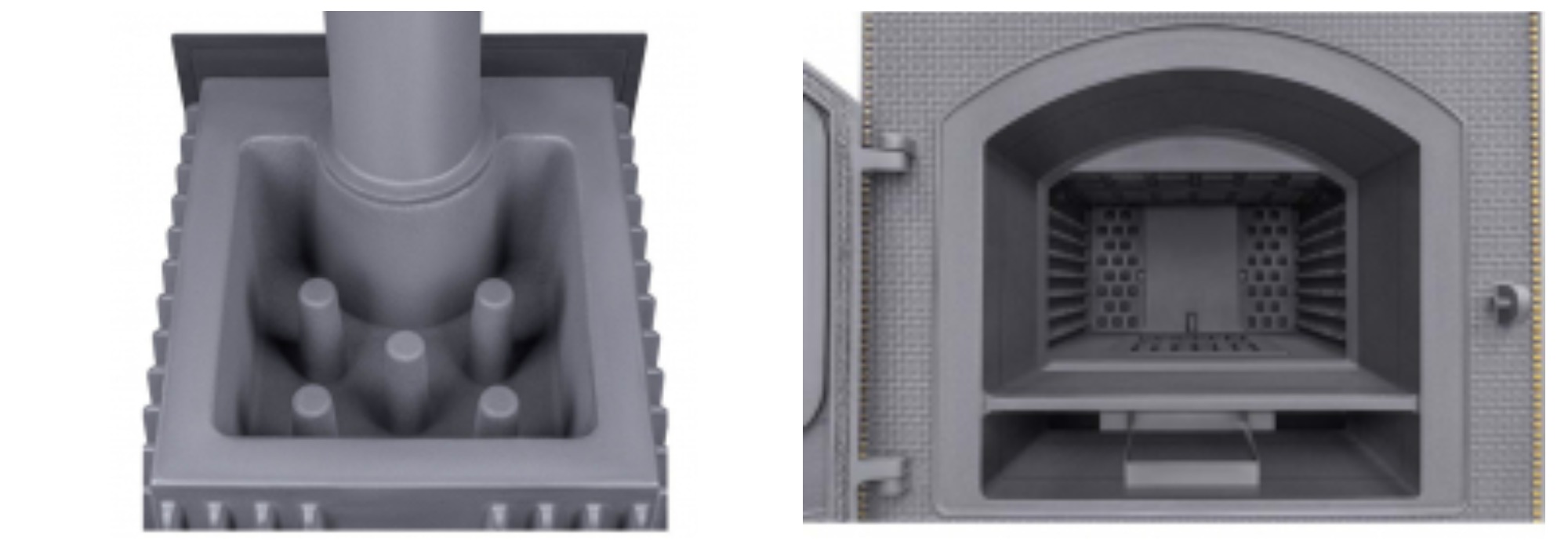 Она имеет сложную форму для хорошего нагрева и массу, составляющую почти половину от веса всей печи. Ее особенностями является то, что: