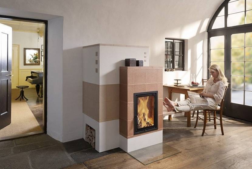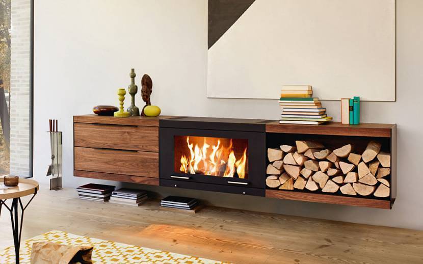 Пристенный способ расположения современной печи для отопления дома на дровахИсточник kamine-streubel.de