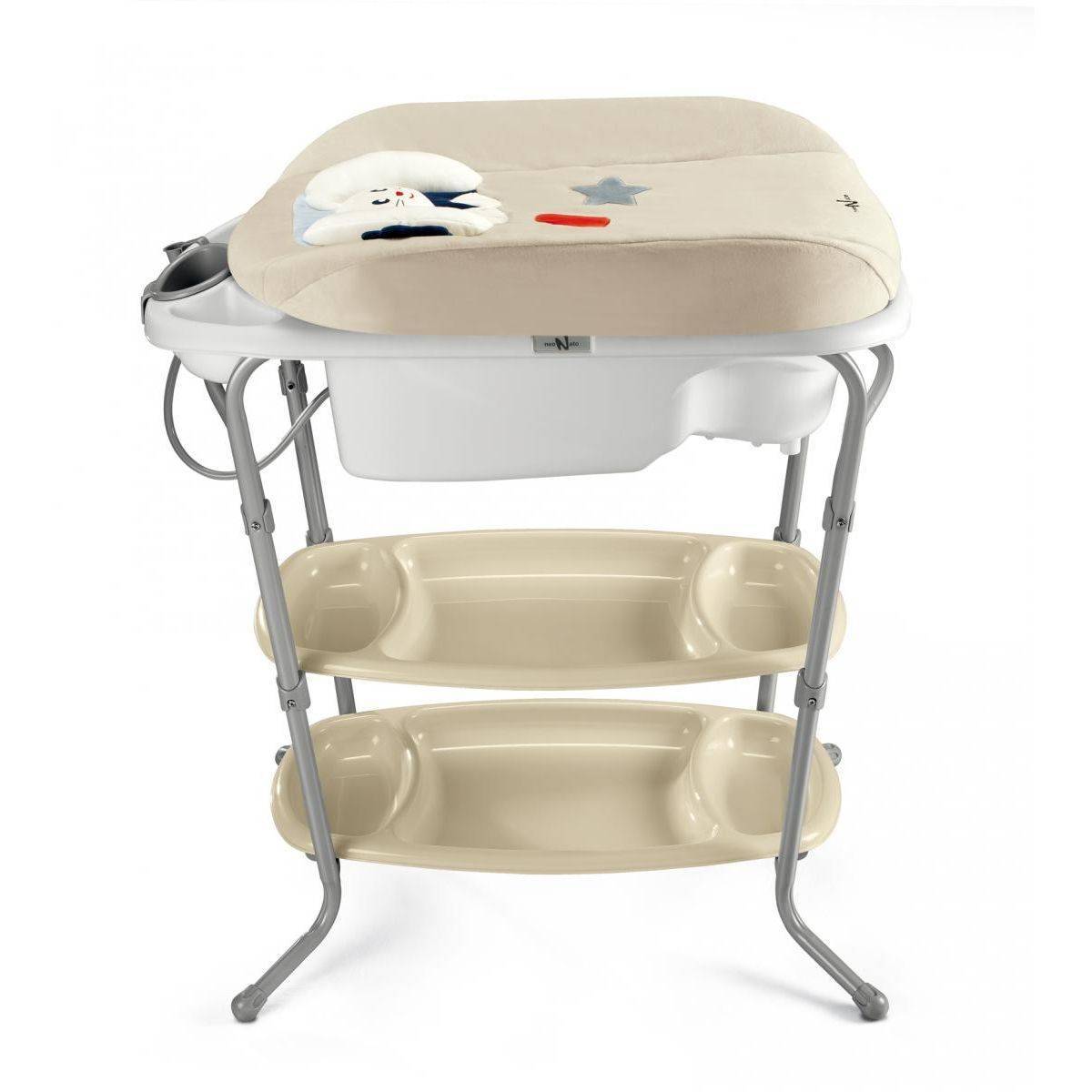 Столик с ванночкой. Лучше всего вписывается в ванной комнате (естественно, если позволяют размеры самой ванной комнаты). Конструкция очень удобная, здесь все под рукой, имеется много места для хранения. Малышу будет комфортно, если вы его искупаете и на месте продолжите все процедуры, вместо того, чтобы нести в другую комнату. Дополнительное удобство предусмотрено и для мамы, ведь она не станет напрягать спину при купании ребенка.