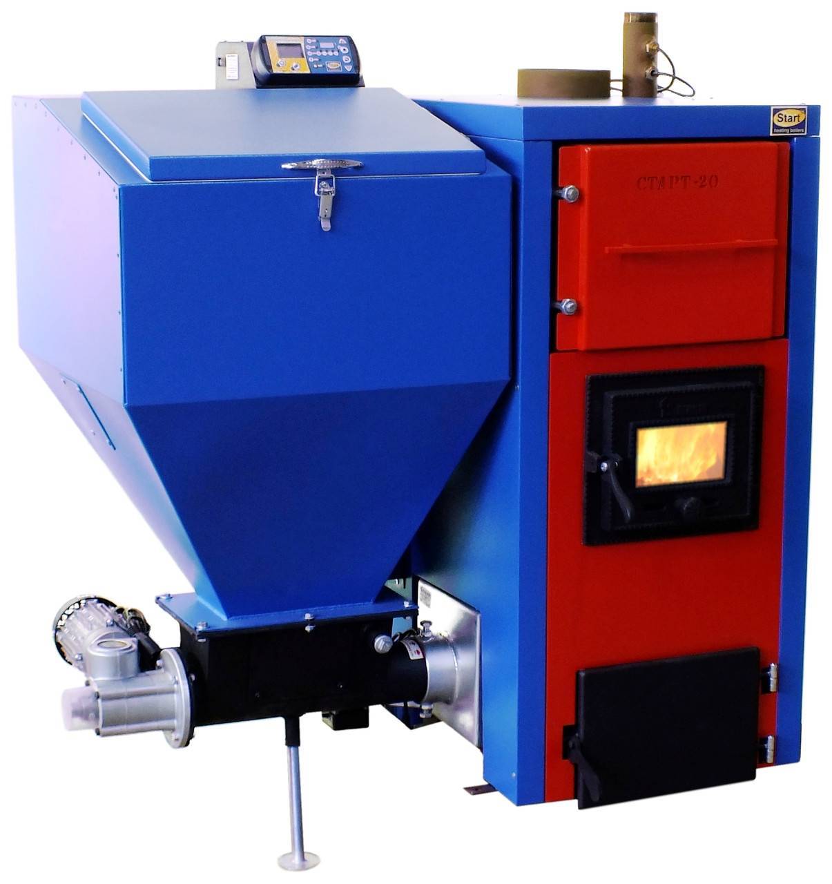 Котлы «Старт» также производятся в России, однако в их комплект входят импортные горелки. «Старт» принадлежит к комбинированным котлам и, кроме пеллетов, может работать на угле и на дровах. Для этого в комплекте имеется колосниковая чугунная решётка, которая устанавливается вместо горелки. Цена на такой котёл колеблется в пределах 130–250 тысяч рублей.
