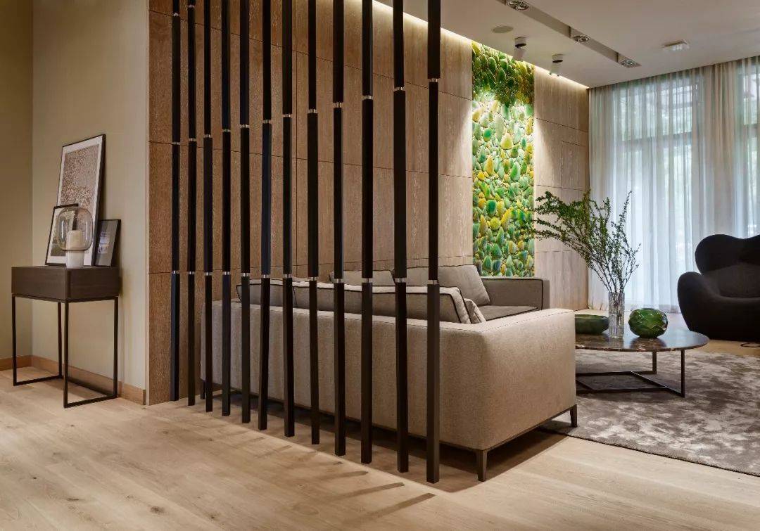Такой тип перегородки выполняет функцию декора и придаёт помещениям особенный акцент. Конструкция должна сочетаться со стилем интерьера и выполняться из соответствующих ей материалов.