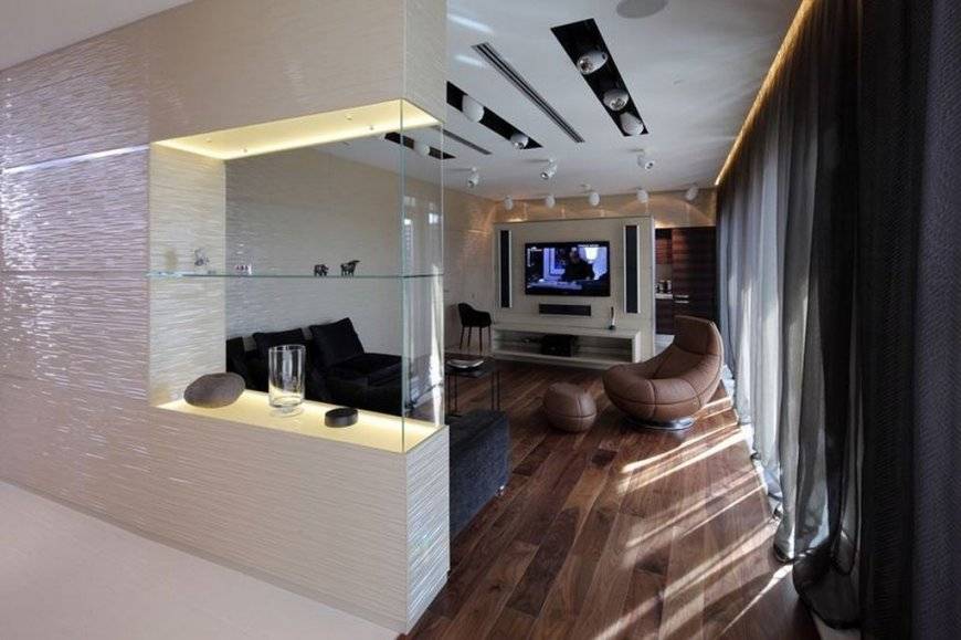 Фото-галерея поможет решить для себя, какой тип перегородки в гостиную подходит именно вам. Красивые решения обязательно порадуют, позволив фантазировать и экспериментировать в домашнем интерьере.