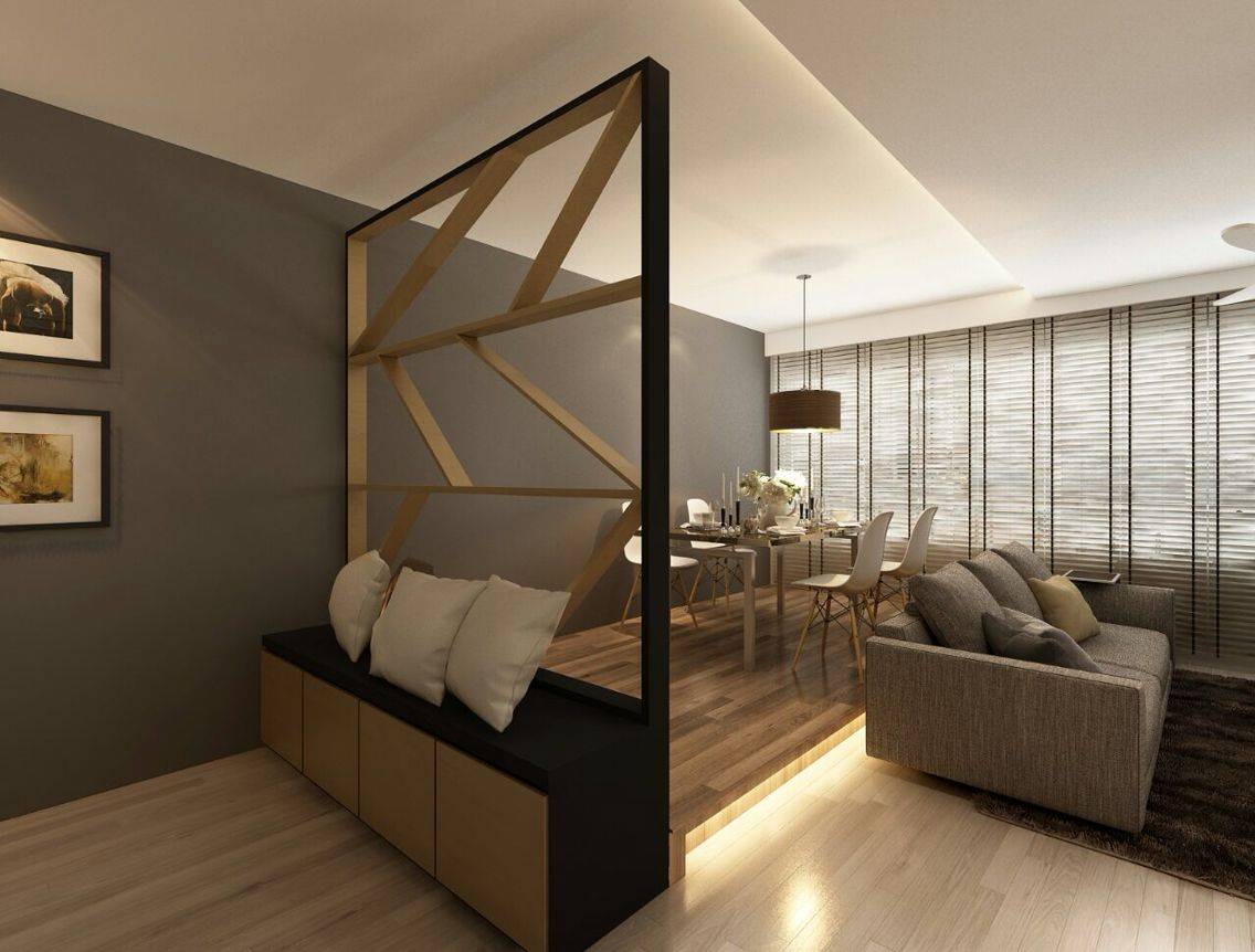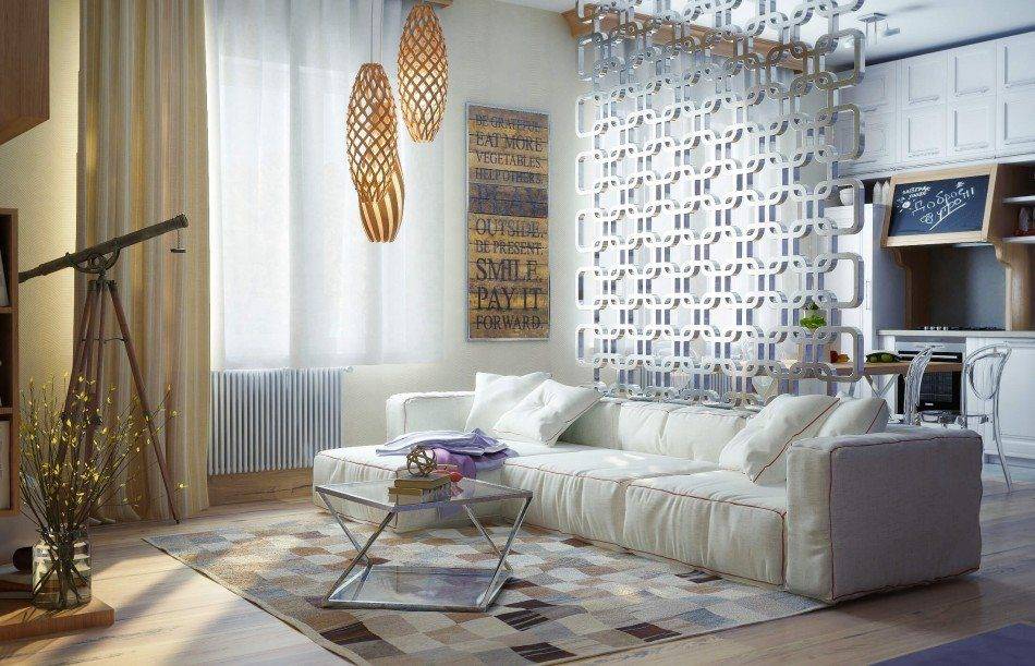 Разделяя помещение на две зоны, можно создать две комнаты: одна для отдыха, а другая для приготовления пищи. Необходимо знать важные правила и нормы разделения пространства