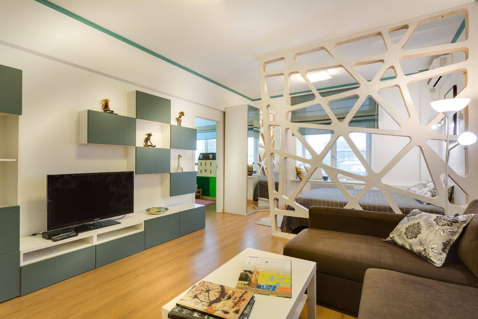 У хорошей хозяйки каждый предмет мебели выполняет определенные функции. В частности в перегородке можно обустроить шкаф, книжные полки или просто установить в ней дополнительное освещение.