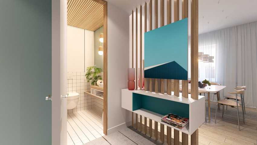 Перед тем как сделать такую перегородку из дерева, следует учесть, что она не будет обладать выдающимися звуко- и теплоизоляционными характеристиками. Лучше, если такая конструкция будет использоваться для зонирования одного общего пространства. Например, такие деревянные конструкции выступают ширмами-перегородками, которые устанавливаются в спальне, отделяя ее от гардеробной.