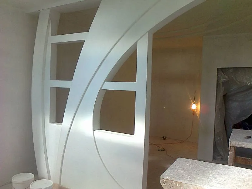 Важно помнить о том, что прямоугольные или фигурные перегородки из гипсокартона – это декоративные стены, они не обладают высокой тепло- и звукоизоляцией. Между двумя листами можно укладывать утеплитель, но практика показывает, что только грамотный выбор уплотнителя позволит снизить нужные показатели. Фигурные перегородки тепло не держат Источник ideal-prodakshn.od.ua