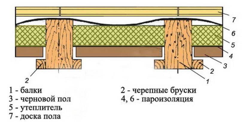 Деревянное перекрытие между этажами в разрезе: