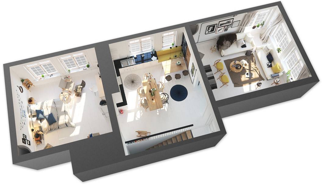 Для создания объемного пространства нередко из двух комнат делают одну. Чтобы дополнительно увеличить помещение, в отделке стен, пола и потолка используют только светлые тона