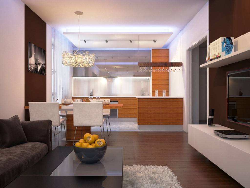 Отличная дизайнерская идея – соединение кухни и гостиной. Для этого сносится смежная перегородка