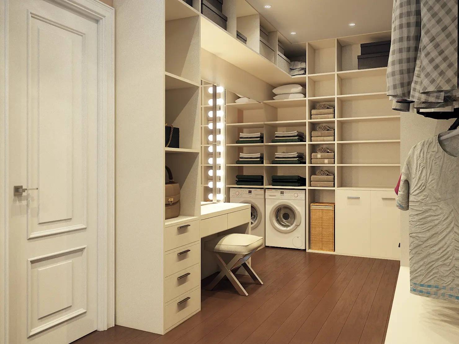 Еще один вариант снести перегородку между жилыми помещениями и создать длинный коридор. Получившийся простенок выступит в роли гардеробной или удобной кладовой.