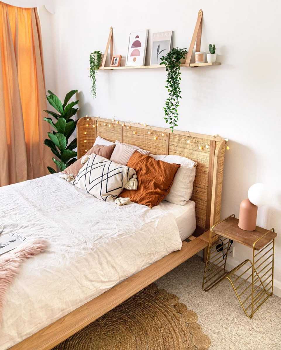 Персиковые обои в спальне могут выступать в роли фона или ярких акцентов. Фоновые обои лучше выбирать в более светлом тоне, тогда как для создания акцентной стены (как правило, за кроватью) лучше выбрать яркие персиковые обои с узорчатыми вставками.