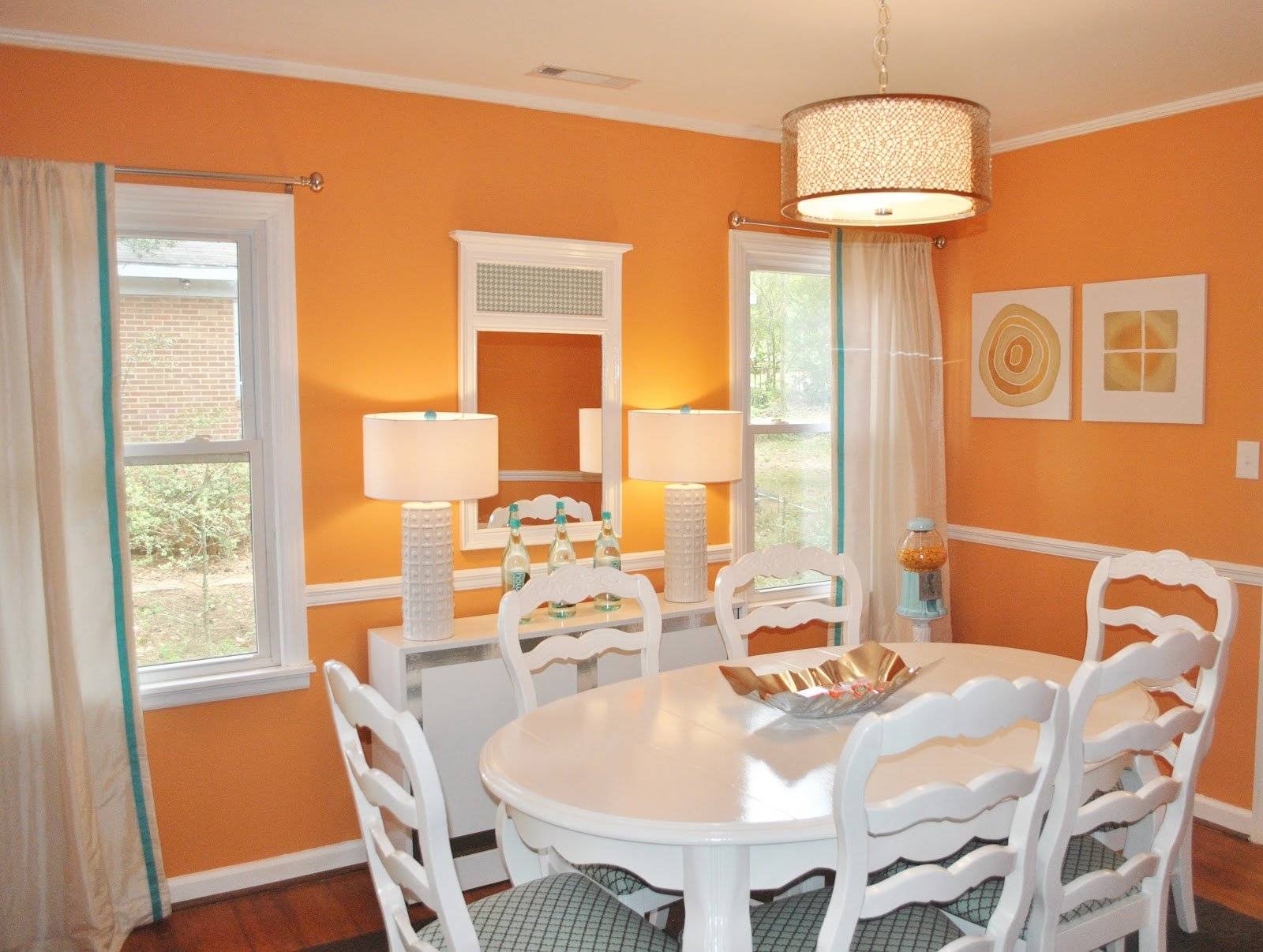 яркой части персикового спектра. Броские обои могут присутствовать в отделке
