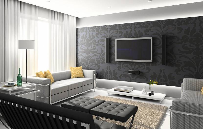 При оформлении гостиной с серой отделкойна первом месте назначение этой комнаты: она должна быть уютной для гостей и всех хозяев дома, хорошо освещенной и не скучной.