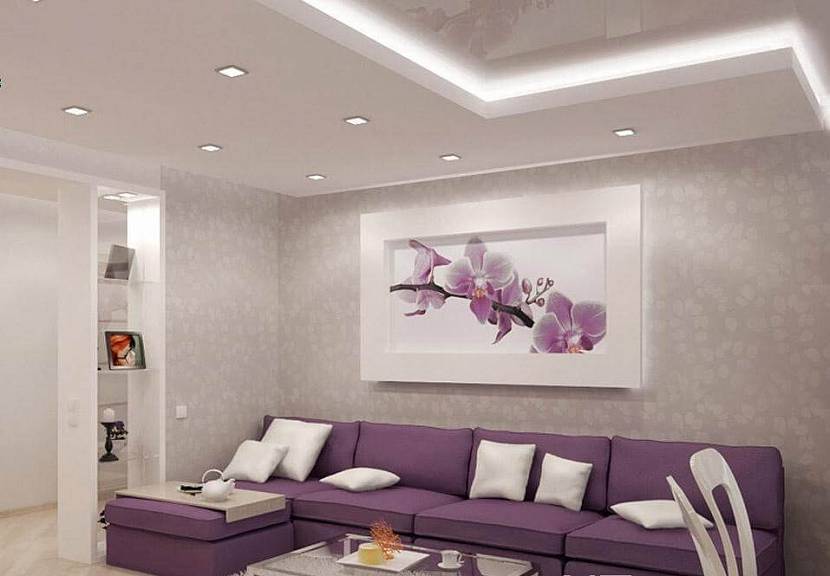 Кроме этого, в сероватой гостиной обязательно стоит организовать равномерное точечное освещение.
