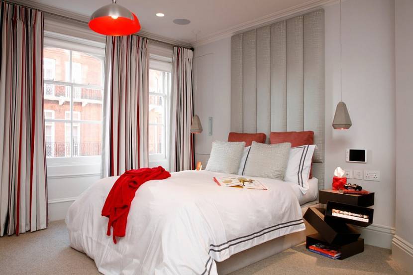 Красный с серым в стильном интерьере гостинойИсточник houzz.com