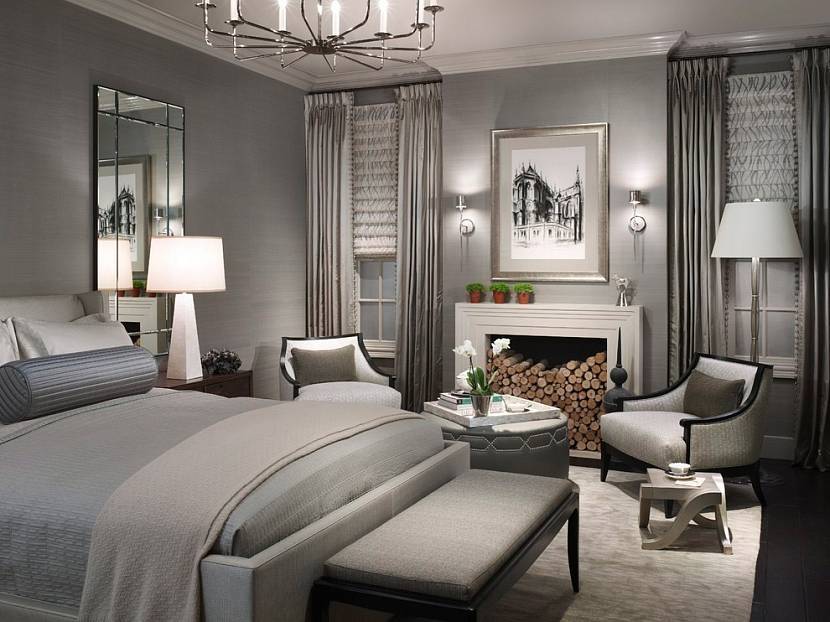 В спальне, лаунж-зоне, домашней SPA-зоненатуральныйсерый цвет выглядит максимально естественно. Особенно в самых классических и самых французских сочетаниях — с бежевым, фиолетовым или лавандовым, голубым, оливковым, розовым.