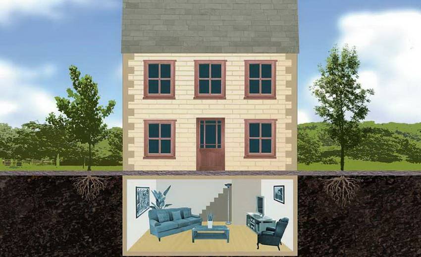 Есть три типа цокольных этажей: на уровне фундамента, выступающий и заглубленный. В последнем случае земля должна находиться в сухом состоянии. Процесс постройки начинается с котлована, его площадь заранее определяется.