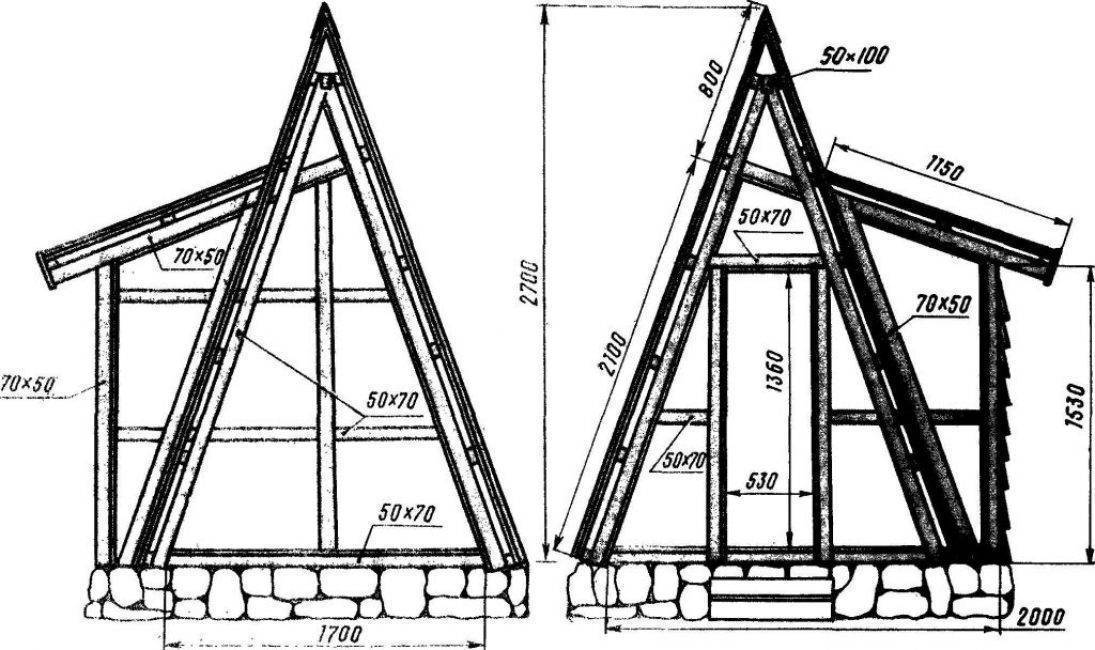 Этот вариант также представляет собой несложную конфигурацию, которая включает два ската, соединенных коньком. Главное достоинство такой конфигурации состоит в отсутствии сложных расчетов. Главное условие – создание кровли с большим углом наклона.