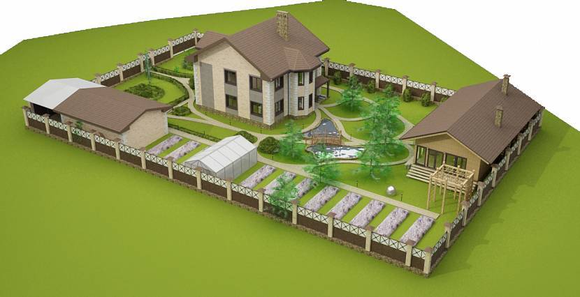 - продумать размещение жилого здания, построек хозяйственного и вспомогательного назначения,