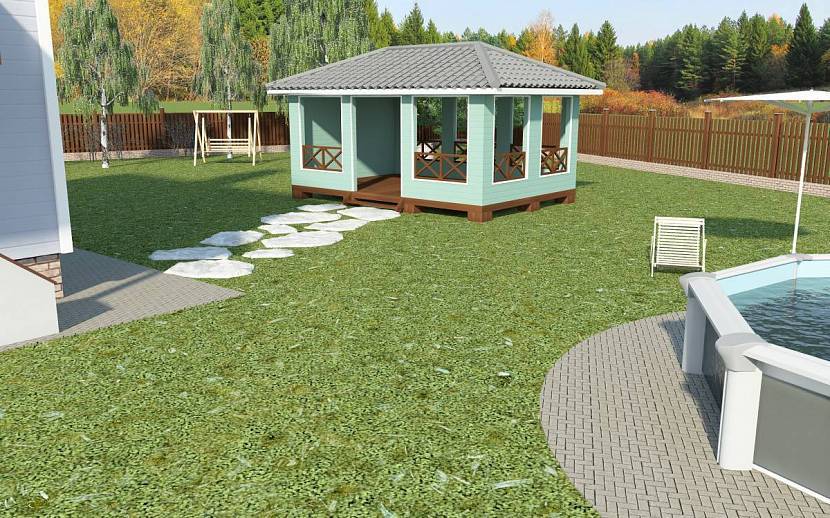 Участок с бассейном и беседкойИсточник arxip.com