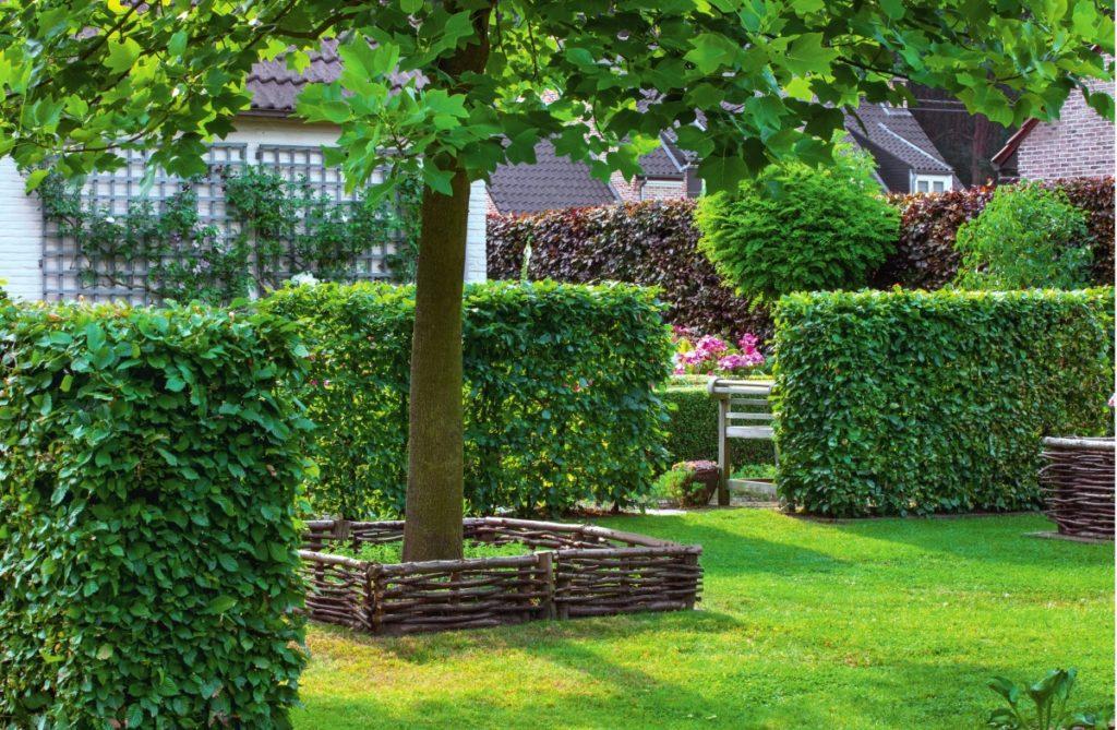 - живой стены, которая формируется либо из лиственных, либо из хвойных культур;