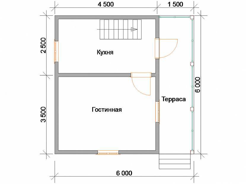 После крыльца можно расположить просторную кухню гостиную. Площадь данного помещения будет составлять около 25 кв.м.