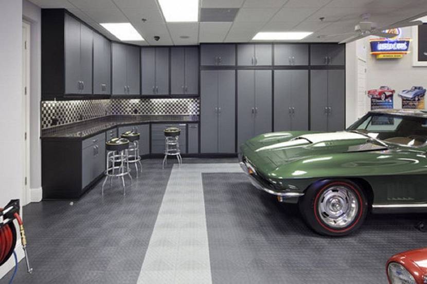 Идея: чтобы сократить расходы на обустройство, в гараже вполне возможно использовать домашнюю обычную мебель. К примеру, шкафы, части кухонного гарнитура или модульные стенки, которые внешне устарели, но находятся в хорошем рабочем состоянии.