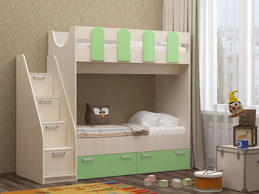Компактная двухъярусная кровать позволит организовать спальные места для детей в гостинойИсточник era-mebeli.ru