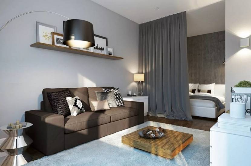 Зонирование однокомнатной квартиры шторамиИсточник dizainvfoto.ru
