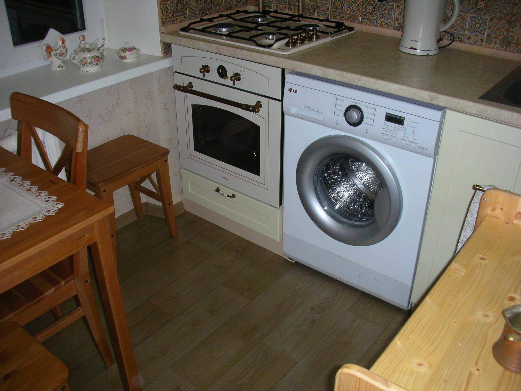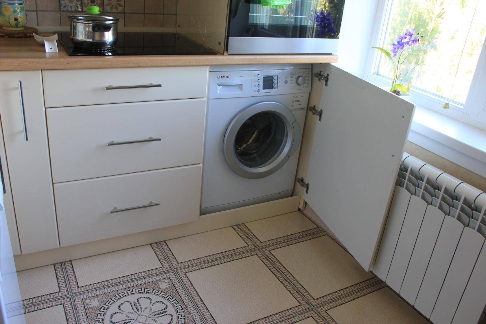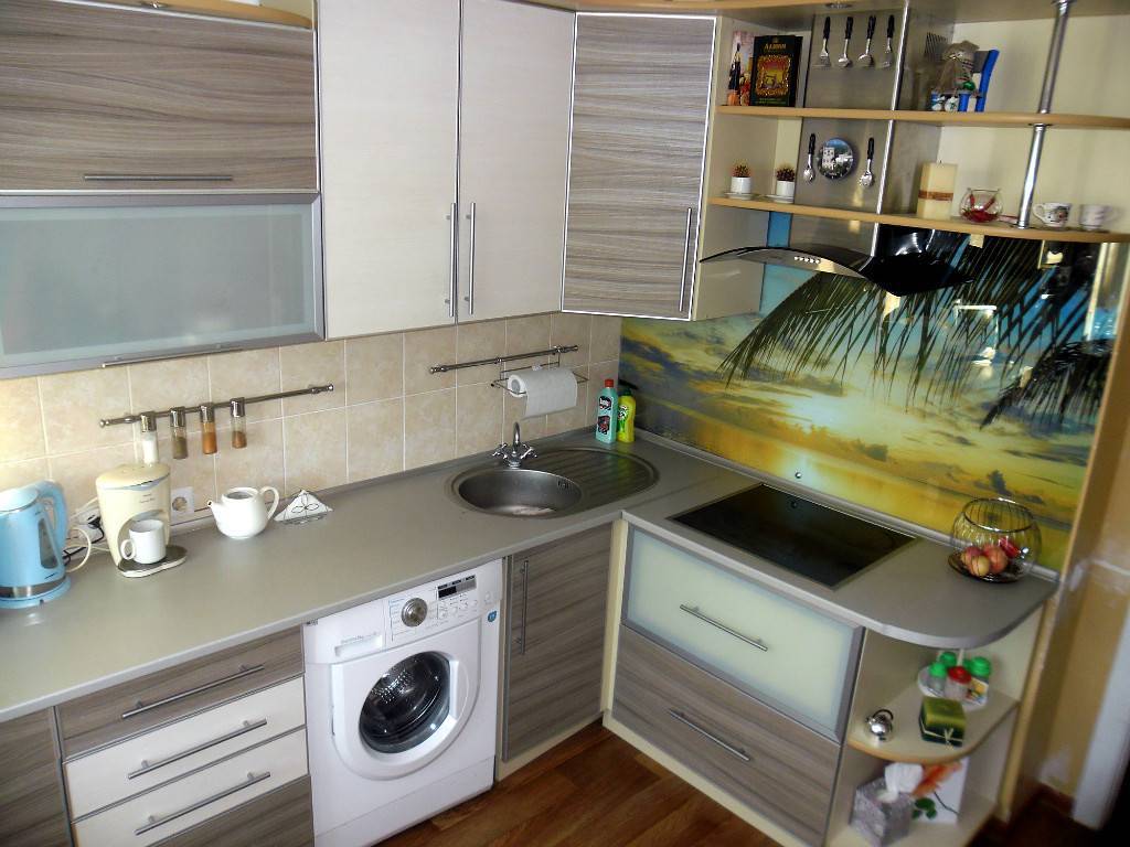 Маленькая кухня 6 кв м может стать единственно возможным местом для установки стиральной машины