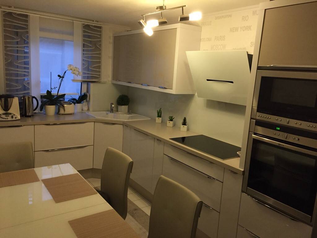 - 2 В просторной кухне “плечи” угла оказываются довольно протяженными. В этом случае дизайнеры рекомендуют остановиться на одном из двух вариантов: