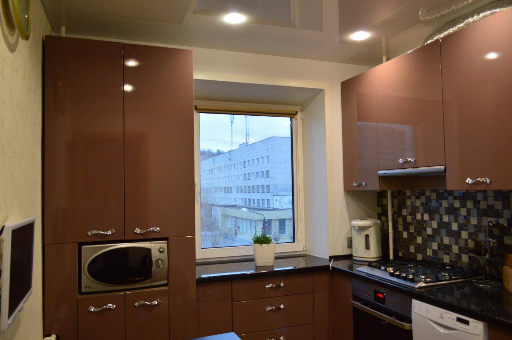 Маленькая кухня 3 на 2 метра с мойкой у окна