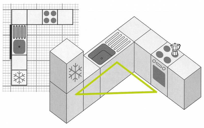 Рабочий треугольник при планировке кухниИсточник kitchenguide.su