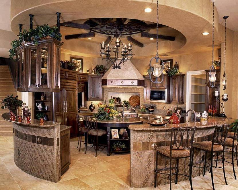 - Функциональный остров. Всегда остается вопрос, что вынести в эту зону. Раковина или плитка будут неуместны. Идеальное решение — дополнительная рабочая поверхность с наличием нижних шкафчиков по кругу.