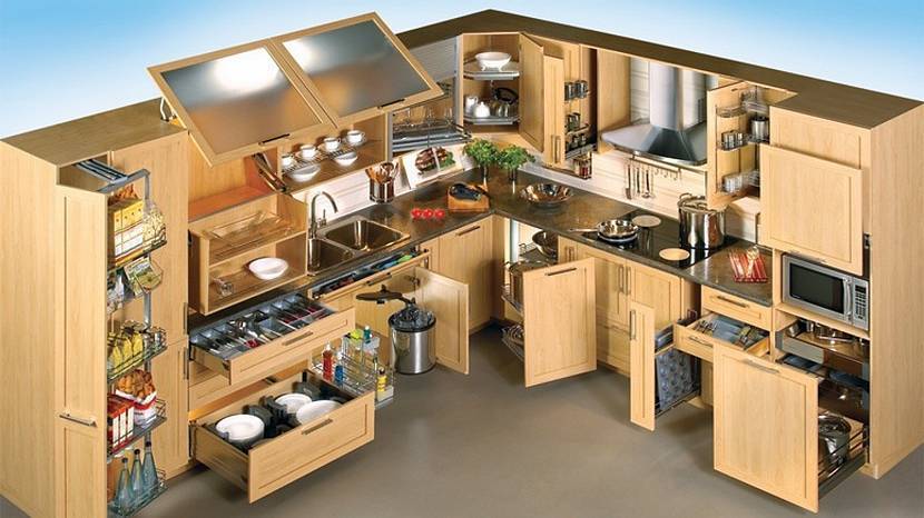 Во-первых, вам не понадобятся всякие волшебные уголки или так называемая карусель. Данные элементы являются примерами умной гарнитуры, которая необходима для полноценного пользования угловыми шкафами.