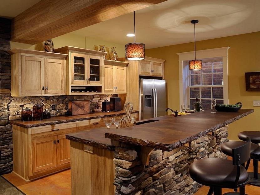 Барную стойку необходимо сделать так, чтобы она была удобной для стоящего человека. Дополнительный комфорт можно обеспечить с помощью стульев, регулируемых по высоте и дополнительных источников света.Источник i.pinimg.com