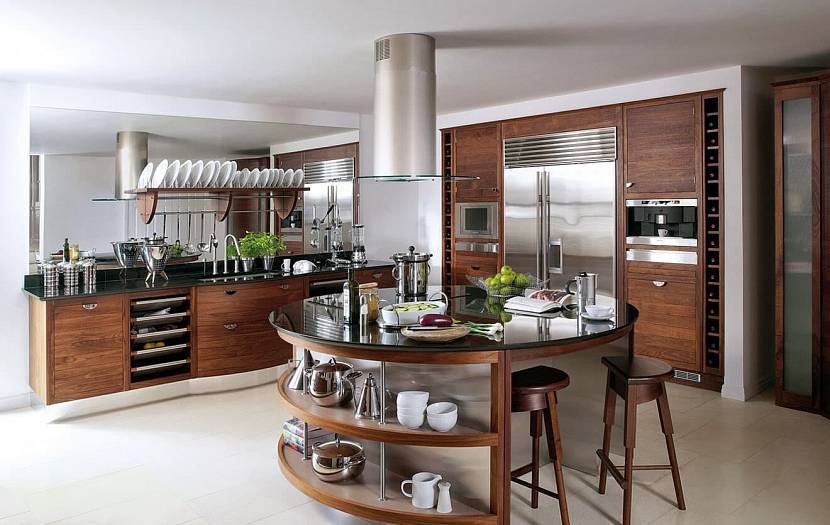 Кстати, обратите внимание: чтобы не биться об углы, столешницы лучше сделать скругленными. Это, кстати одно из последних направлений — круглые кухни и круговой дизайн