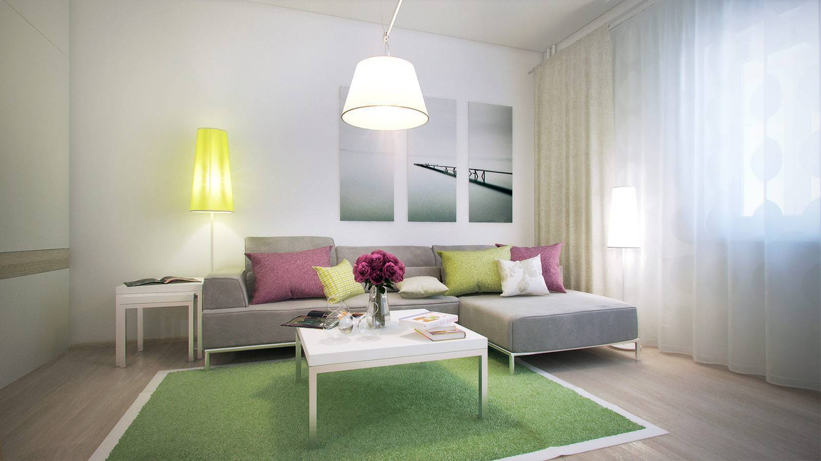 Нужно корректировать цветовую гамму, ведь всегда хочется наполнять жилье яркими элементами, однако тут желательно держать себя в рамках. Лучше всего использовать лишь яркие нюансы, например, текстиль или яркую мелкую мебель, что увеличит пространство визуально, а не наоборот.