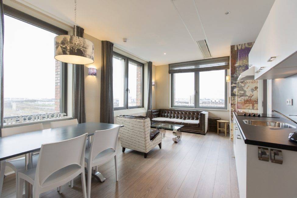 - Высокие потолки противостоят ощущению стеснения. Они открывают микро апартаменты и создают иллюзию большего пространства.